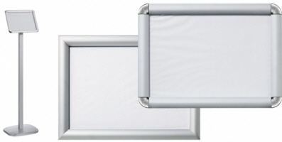 Cornici in alluminio con chiusura a scatto per inserimento cartoncino